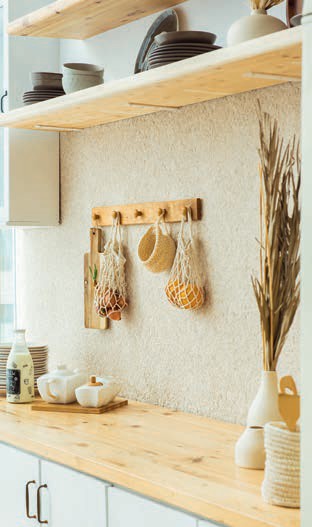 Drewniane i drewnopochodne okładziny na stałe zagościły już na ścianach kuchni. Chętnie sięgamy po oklejone fornirem płyty. Szczególnie dekoracyjne są te wykończone fornirem modyfikowanym. Można też pokryć ściany kuchni deskami boazeryjnymi i nadać im niebanalną kolorystykę, używając nowoczesnych alkidowych farb kryjących. Dobrym pomysłem będzie zastosowanie paneli drewnopochodnych grubości 8 mm oraz drewnianych – układa się je na specjalnym ruszcie. Coraz odważniej sięgamy również po płyty drewnopochodne takiej jak MDF czy OSB. Ciekawą propozycją są też panele trójwymiarowe z MDF-u, które budują efekt przestrzenny, jakiego nie uzyskamy, stosując inne materiały. Są trwałe, odporne na uszkodzenia mechaniczne oraz paroprzepuszczalne. Można je malować farbami emulsyjnymi.